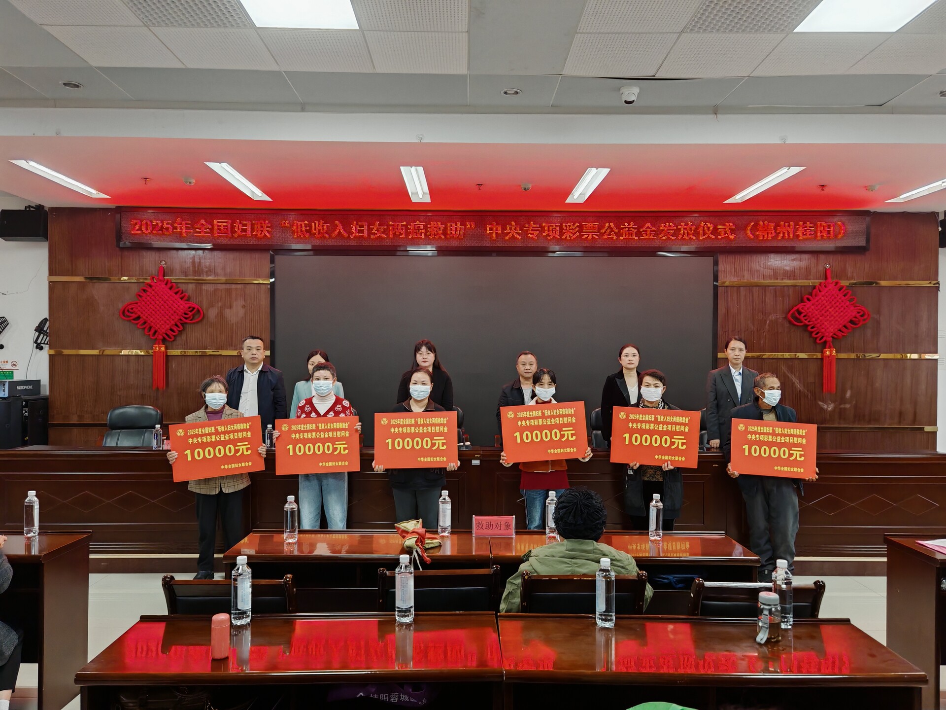 新桂阳10月31日讯(记者 周立志)10月30日,我县2025年全国妇联“低收入妇女两癌救助”中央专项彩票公益金发放仪式在县妇幼保健院举行。