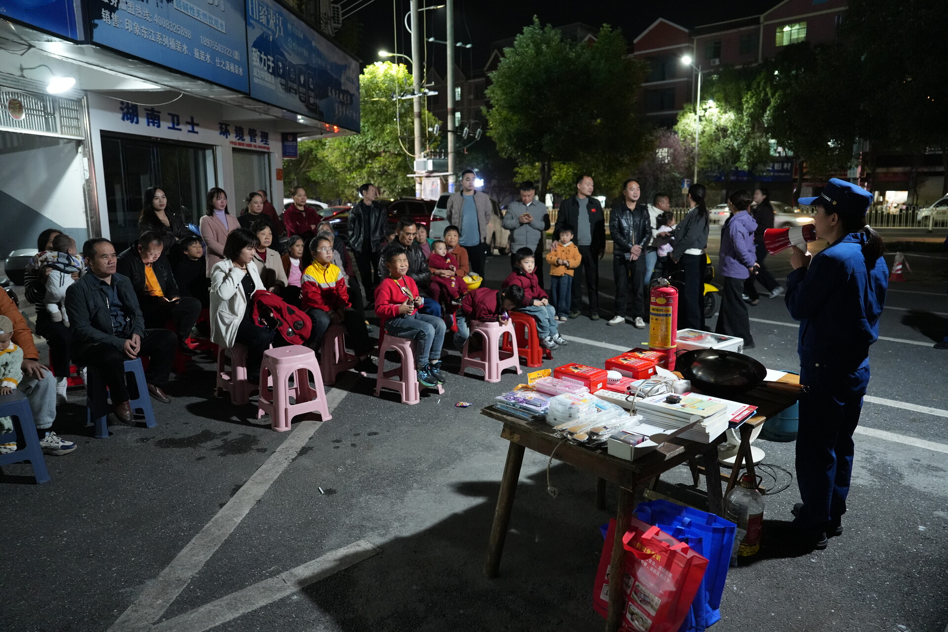宣传人员还详细介绍了联网式独立烟感报警器、灭火器、过滤式消防自救呼吸器和灭火毯的功能特性,手把手实操教学干粉灭火器“提、拔、握、压”四步使用法,并针对电器起火、油锅起火、液化气罐起火等常见场景,分别进行专项应急处置演示,让群众熟练掌握干粉灭火器的正确用法。