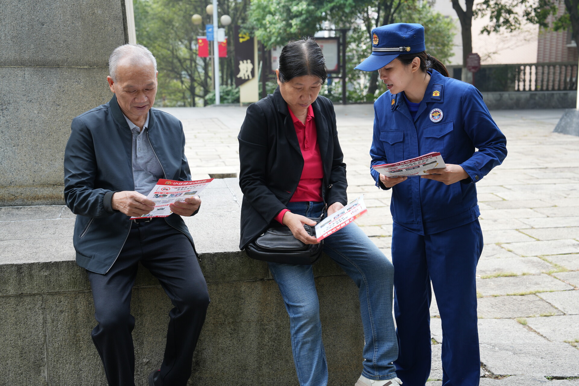 新桂阳11月5日讯(记者  刘娣  通讯员  贺云丽)近日,县消防救援大队联和鹿峰街道东塔社区网格员队伍,深入居民小区,开展消防“家访”和“社区课堂”送平安宣传活动。