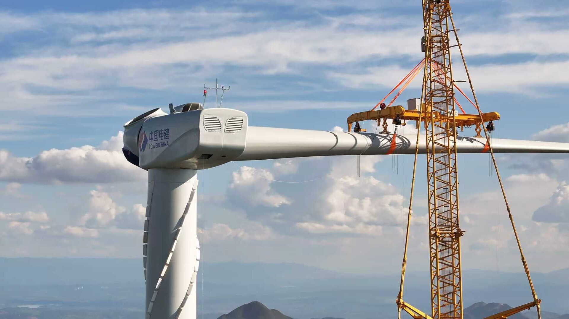 中电建新能源华中分公司欧阳海项目二期项目经理聂海龙说:“我们在吊装之前,就会会同总包、监理制定一个详细安全可靠的一个施工方案。在施工过程中,我们也会督促调动单位运输单位确保大件运输顺利抵达那个吊装平台,确保吊装的顺利进行。”