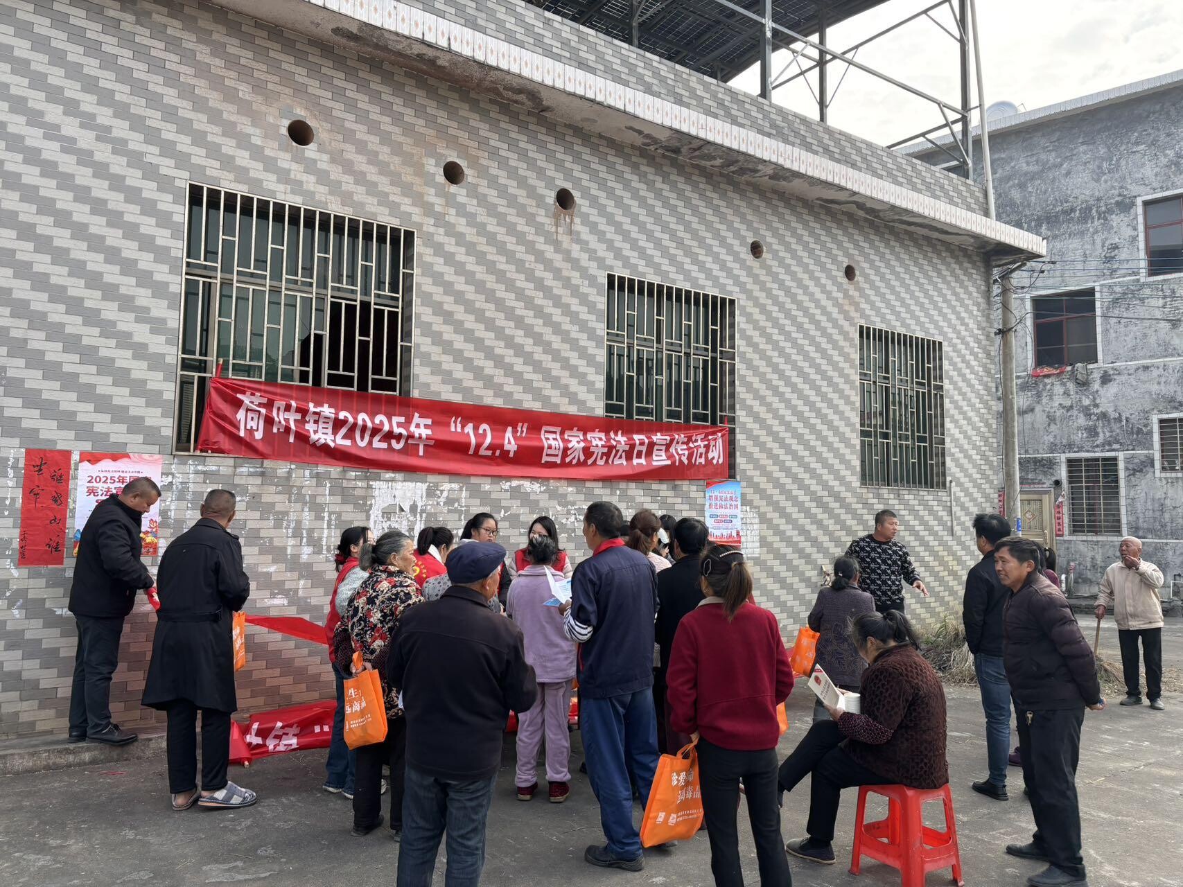 打通法律服务“最后一公里”是法治乡村建设的关键。在“12·4”国家宪法日,荷叶镇于人流集中区域设立普法宣传点,通过悬挂标语、发放手册等方式,普及宪法及与群众密切相关的法律知识。现场开设“法律咨询台”,安排法学专业干部面对面解答土地权属、婚姻家庭等常见法律问题。为提升服务实效,同步建立“诉求登记-分级处置-限期反馈”闭环机制,确保群众咨询事事有回音。活动中,村民王大姐就一起土地边界纠纷前来咨询,工作人员耐心讲解相关政策并协助对接镇调解员跟进处理。她高兴地说:“在家门口就能问得这么清楚,太好了!”法治服务正以可感可及的方式,融入日常、温暖人心。