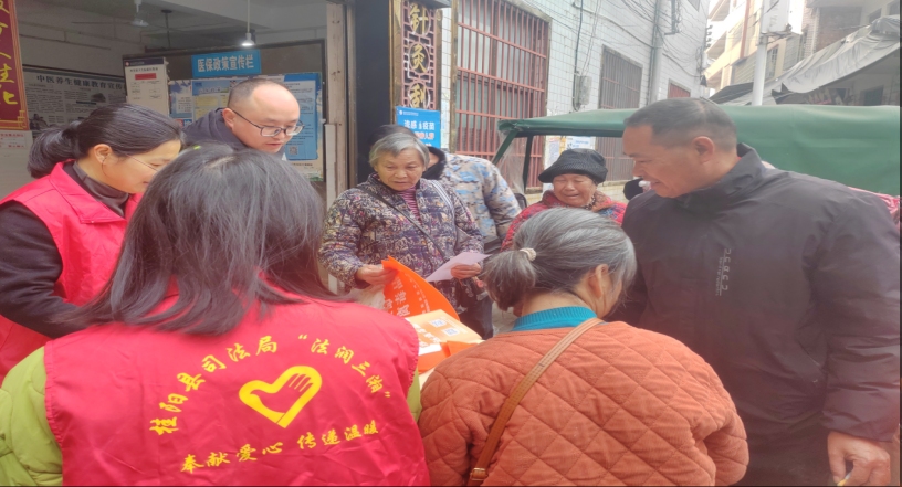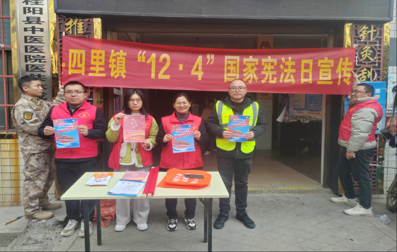 新桂阳12月9日讯(通讯员 苏莹莹 唐文香)12月4日,为大力弘扬宪法精神,增强群众的法律意识和法治观念,四里镇积极开展“12·4”国家宪法宣传日活动。此次活动在镇卫生院门前举行,由司法所牵头,联合镇禁毒办、退役军人事务办等多部门协同合作,吸引了众多群众踊跃参与。