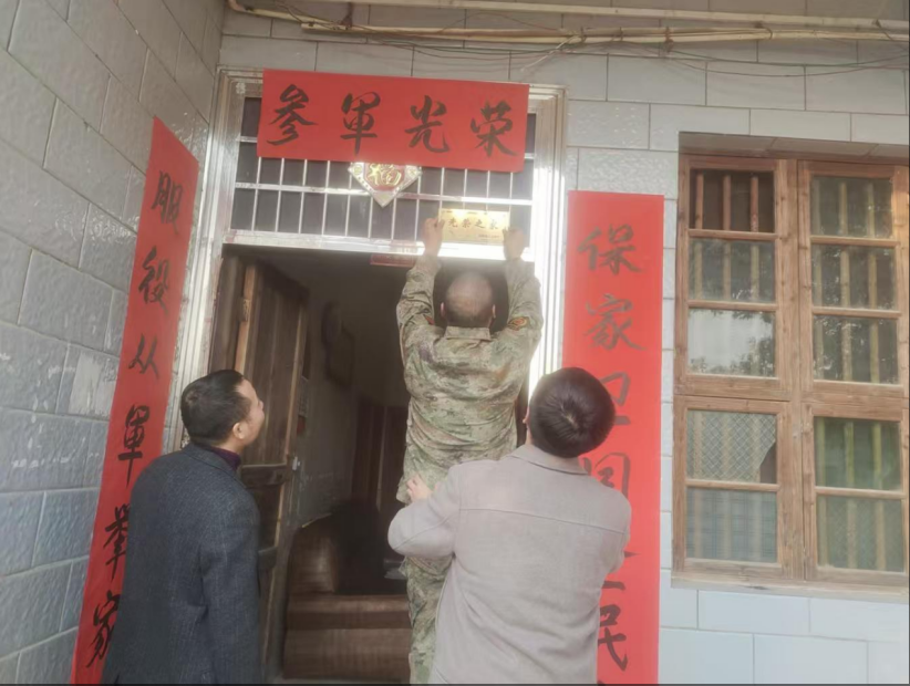 新桂阳12月10日讯(通讯员 周道群 郭武军)近日,敖泉镇组织镇武装部,退役军人服务站及村(居)委会工作人员组成慰问组,带着对军人军属的崇高敬意,开展"光荣之家"牌匾上门悬挂活动,为2025年新入伍青年家庭送去这份特殊的荣誉与关怀,让"一人参军,全家光荣"的理念在全镇落地生根。