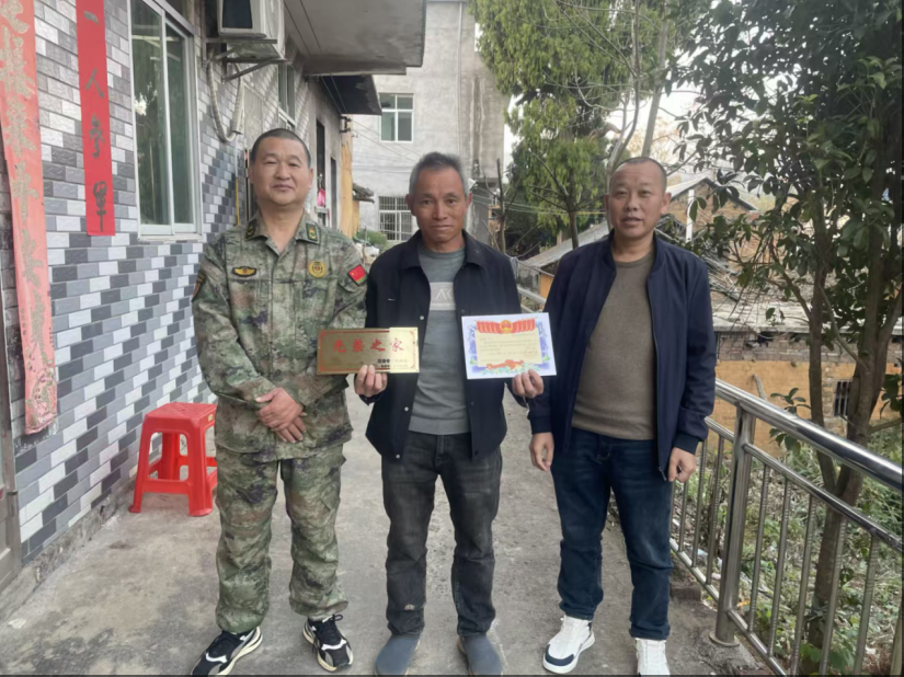 "孩子能穿上军装保家卫国,是我们全家的骄傲,政府还专门上门挂牌,这份荣光我们会好好珍藏!"新入伍青年张湘桂的父亲望着牌匾激动地说,"我们一定会当好孩子的坚强后盾,让他在部队安心服役,刻苦训练,不辜负党和政府的期望。"邻里乡亲闻讯纷纷驻足祝贺,现场洋溢着尊崇军人,关爱军属的浓厚氛围。