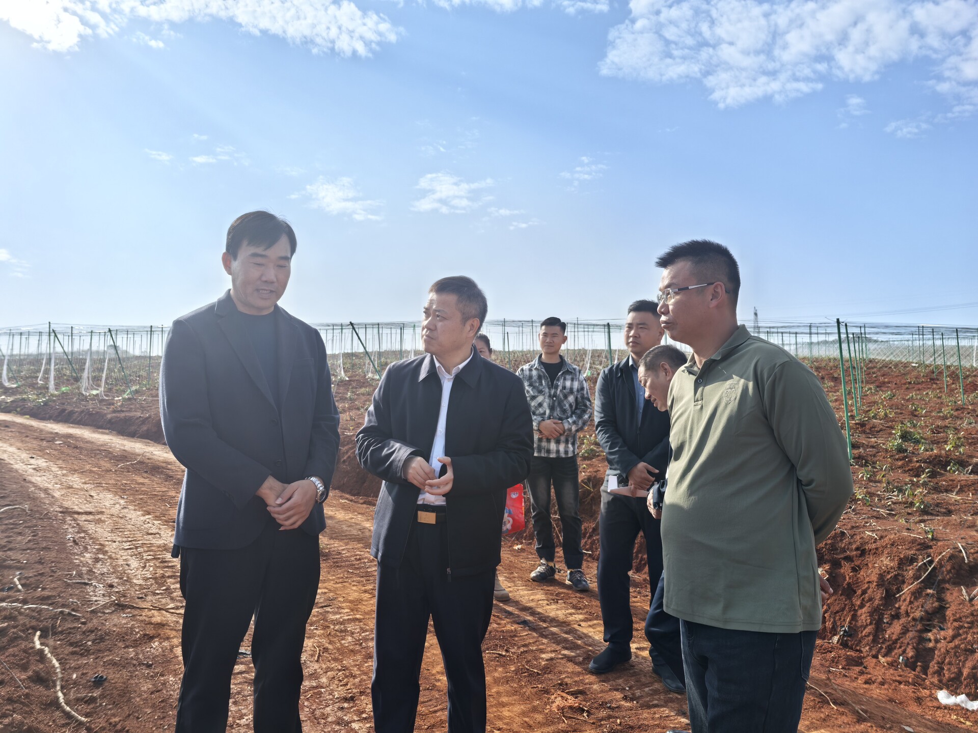在种植基地,成片的土茯苓藤蔓沿着支架攀爬生长。巫初华与基地负责人亲切交流,了解土茯苓种植周期、亩产收益、技术支撑及市场销路等情况。