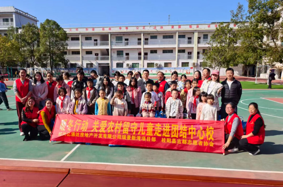 新桂阳12月25日讯(通迅员:谭宜达)近日,桂阳县古郡志愿者协会携手爱心企业:郴州亿通达房地产开发有限公司瑞景新湾项目部,走进县团结中心校,开展了一场温情洋溢的“暖冬行动”暨关爱农村留守儿童主题活动,为冬日校园注入浓浓暖意。