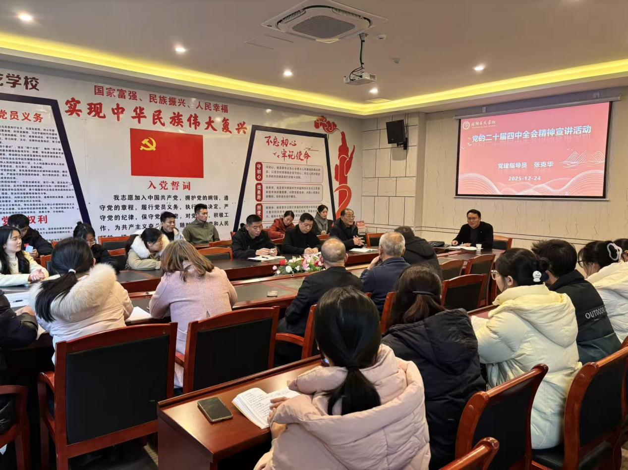 新桂阳12月26日讯(通讯员 吴亚峰)为切实将党的二十届四中全会精神转化为教育教学工作的行动指引,12月24日下午,桂阳县教育局职成站负责人、桂阳县子龙学校党建指导员张克华到桂阳县子龙学校,开展党的二十届四中全会精神专题宣讲会。