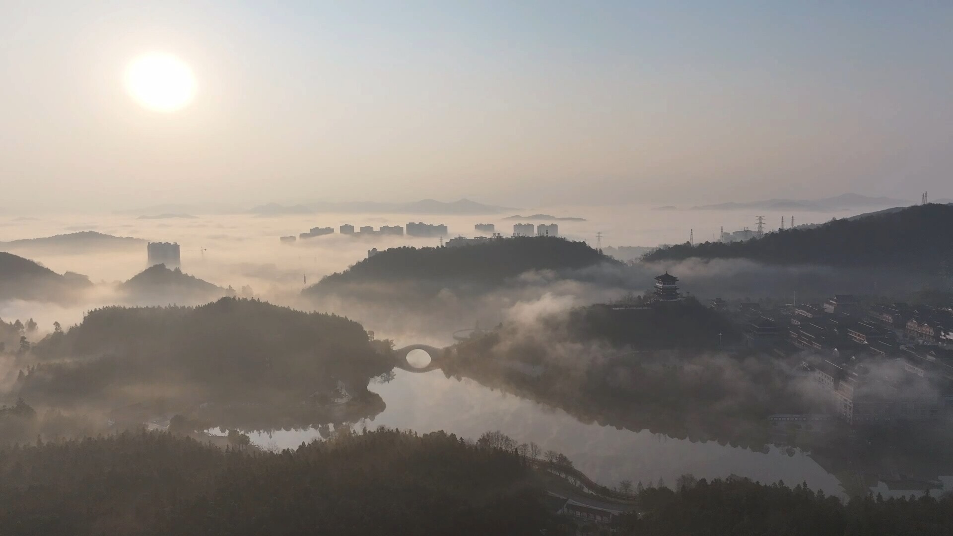 桂阳文化园以“楚南名区,汉初古郡”文化为内核,依山傍水建设了古郡城、环湖景观带、东塔公园等多个功能景区,是集历史教育、文化体验、生态休闲于一体的城市文化客厅,也被誉为城市绿心。此次云雾奇观,展现出桂阳文化园人文底蕴与自然生态交融的独特魅力。