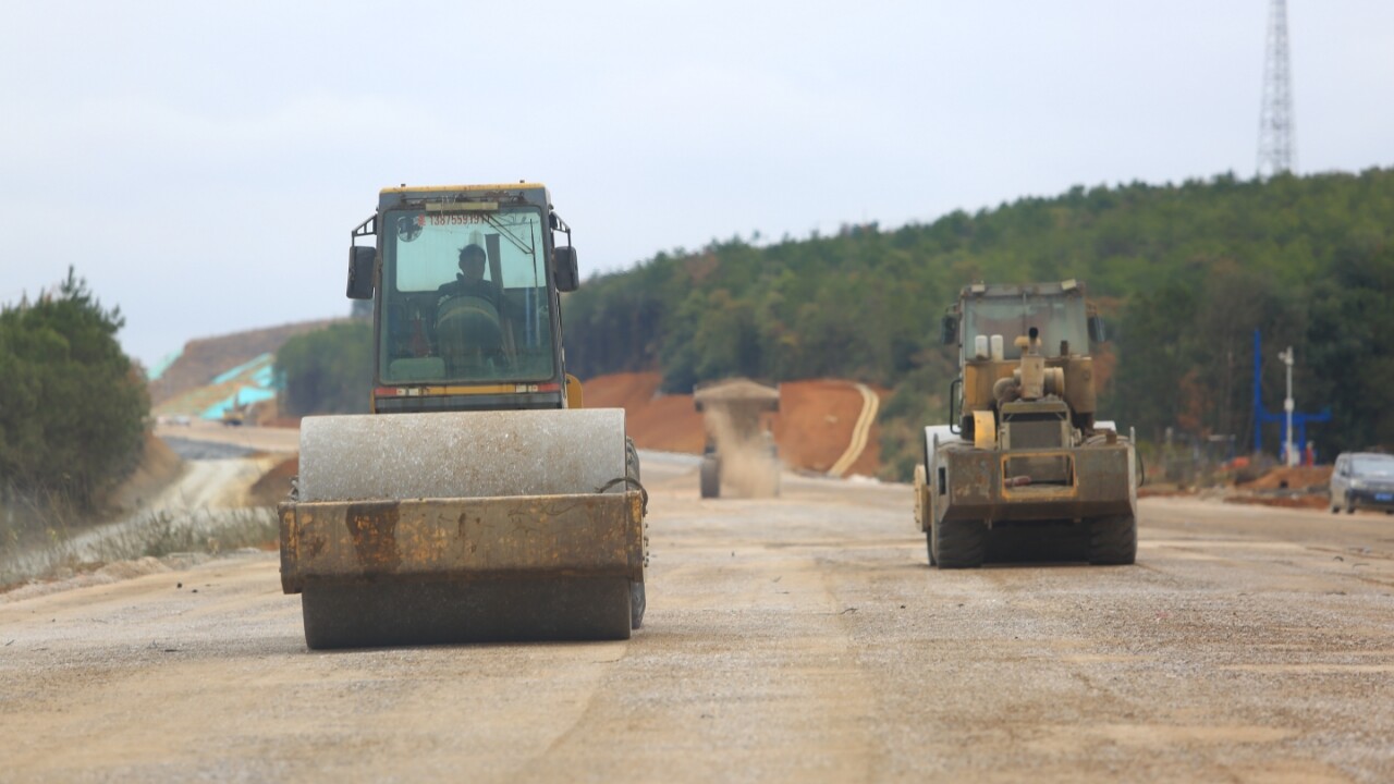桂新高速公路项目总包部协调部部长孙小军告诉记者:“路基交验完以后,就开始铺设水稳料,水稳料整个全县已经铺设了两层水稳。现在剩下的工程,预计在年后开始铺设第三次水稳,再加上铺沥青,路基完成量达到97%,水稳层75%左右。