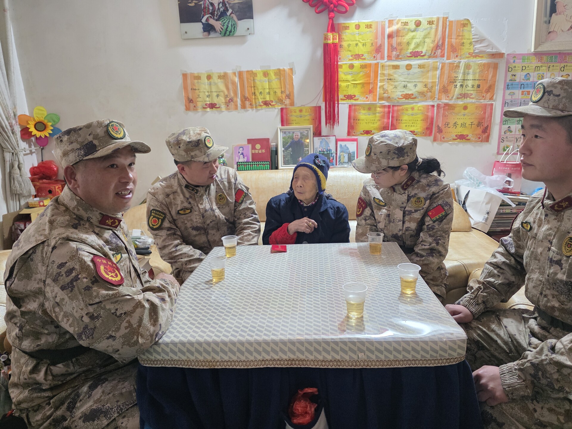 新桂阳1月23日讯(记者 李玮嘉 通讯员 夏峰)1月22日,县人武部联合浓香红服务驿站的志愿者对抗战老兵、抗美援朝老战士、湘南游击队员进行走访慰问,在寒冬岁末为他们送去党和政府的关怀与温暖。