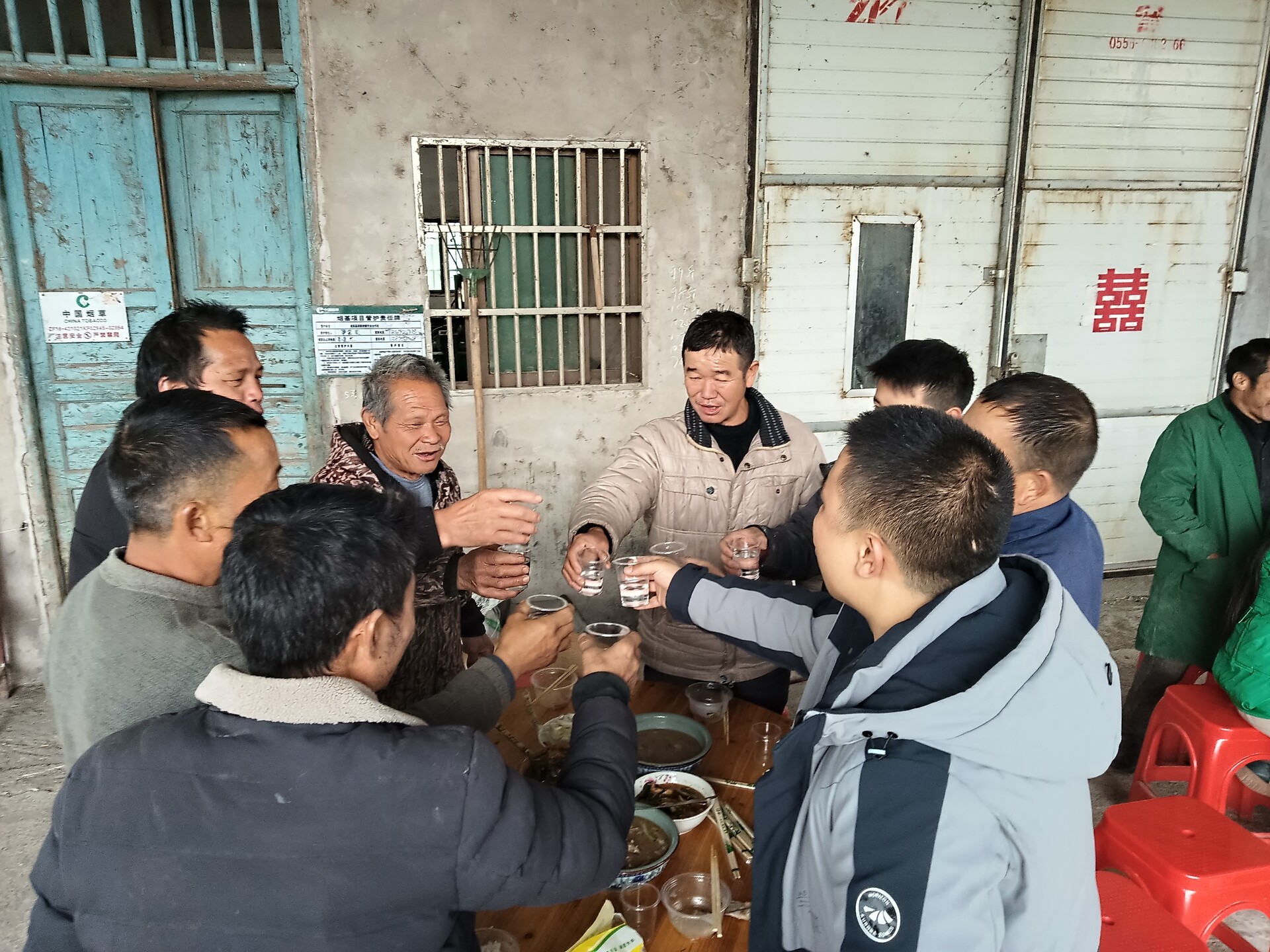 不久后,煎豆腐、猪杂汤、红烧大肠、炖大鹅等一道道冒着热气的乡土至味便摆满了长桌,众人围坐,品尝美食。碗筷交错间,既有对过去一年收成的感慨,也满是对新春的期盼。缭绕的蒸汽、扑鼻的香气、热闹的谈笑,成为流峰镇冬日里最踏实、最温暖的新年味道。