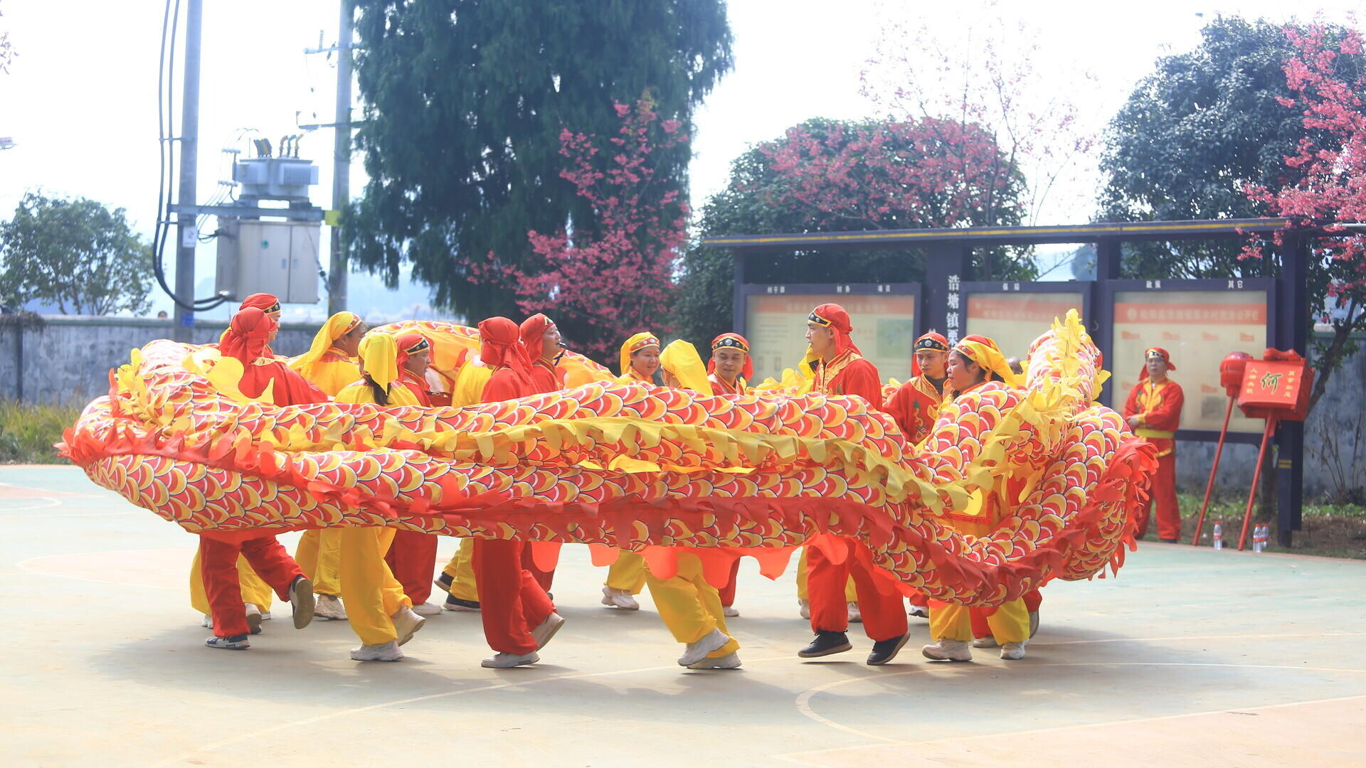 活动现场,锣鼓喧天。村民自发组建的舞龙队闪亮登场,一条金龙和红龙腾跃盘旋、翻转穿梭,时而昂首奋进、时而盘旋祈福,动作行云流水,场面气势恢宏。