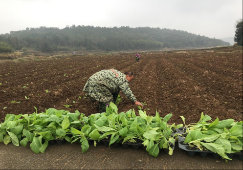 人勤春来早,移栽正当时。3月10日,走进樟市镇的烤烟种植基地,映入眼帘的是一派热火朝天的劳动景象。烟农们三五成群,分工协作,干劲十足。打穴、放苗、培土、压实……一系列工序在大家的默契配合下有条不紊地进行着。一垄垄覆盖好的地膜银光闪闪,一排排嫩绿的烟苗在春风中微微摇曳,与忙碌的农户身影交相辉映,勾勒出春日里最动人的田园诗画,为大地披上了孕育希望的“新绿”。