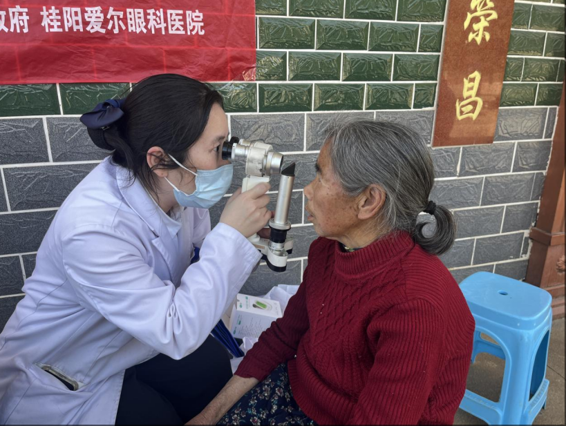 活动首站设在桐木村赵家组文化活动中心门口。现场,来自桂阳爱尔眼科医院的医护人员们迅速搭建起临时检查点,为前来咨询和检查的村民,特别是老年朋友们,提供了细致周到的服务。他们不仅免费为村民进行视力测试、眼底检查等专业眼科检查,还同步提供血压、血糖、血脂测量及心电图检查等基础健康服务。