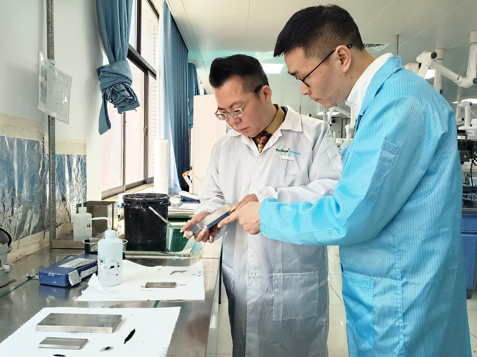 记者在湖南帝京见到欧阳成时,他身穿白大褂,与研发人员交流技术细节,俯身查看实验数据,拿起样板仔细比对,忙碌在实验台之间。刚忙完实验室的工作,他又转身走进生产车间,实地了解涂料的生产情况。从研发到生产,每一个环节,他都和员工们一起扎根在一线。