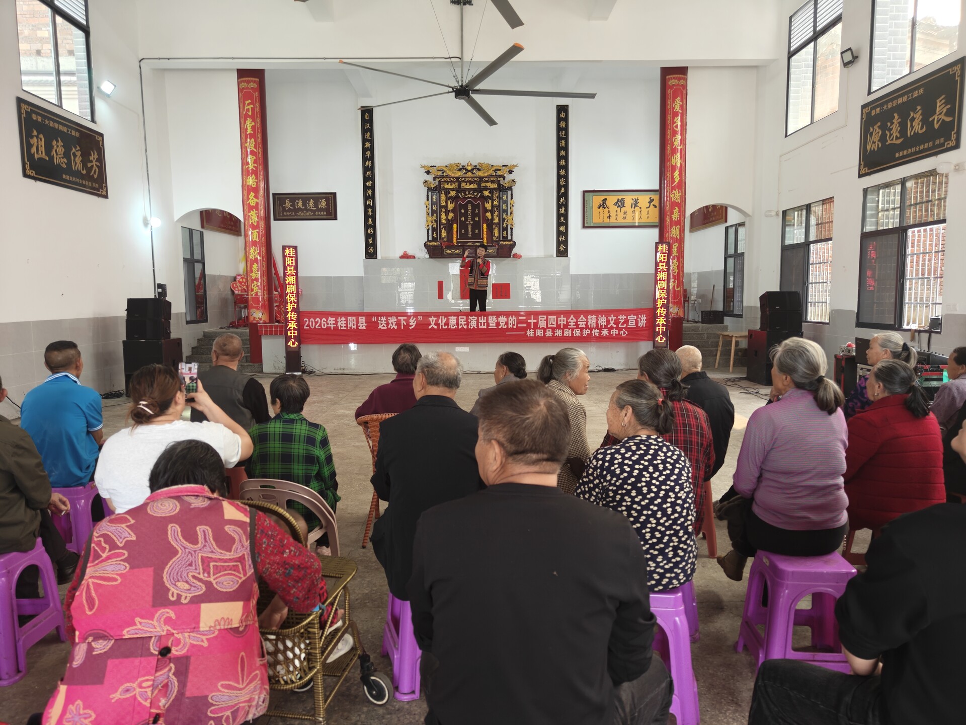 新桂阳4月9日讯(记者 欧阳宇轩)4月8日,县湘剧保护传承中心到舂陵江镇春江村开展“送戏下乡”文化惠民演出活动,将丰富的精神食粮送到了基层百姓家门口,以文化甘霖滋润群众心田,用传统艺术为乡村生活注入文化活力。