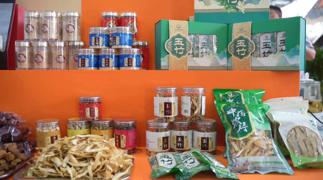 在桂阳主题展馆,湖南丹桂园医药有限公司、湖南景发食品有限公司、桂阳玉竹产业研究院(共和农场)等10余家企业中药材产品集中亮相。产品涵盖高禾玉竹、玉竹饮片、玉竹冻干粉、组培玉竹苗、玉竹酒、槐花酒及黄精系列等特色产品。展馆通过实物陈列、图文展示、视频宣讲、现场解说等多种形式,全方位展示了桂阳县中药材产业发展的最新成果。
