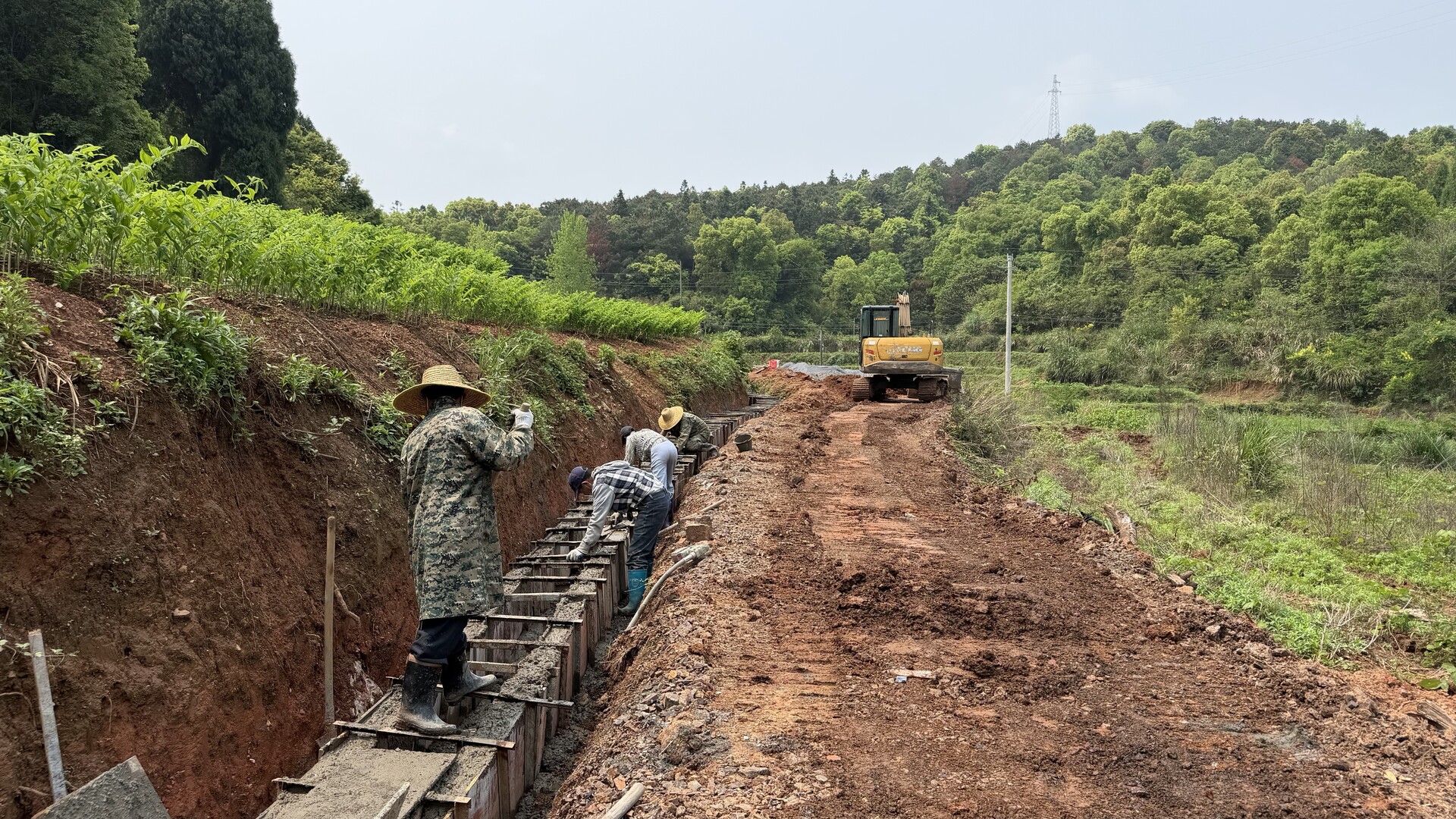 完善的水利设施是耕地高产的基础保障。在樟市镇东郊村,水渠建设正紧张有序推进,争取赶在早稻插秧前投入使用。樟市镇每年冬季由村组上报、镇里核实,收集需修缮的水利设施信息,快速完成上报、批复、立项、招标,并利用冬春空白期加紧建设,确保不影响春耕。