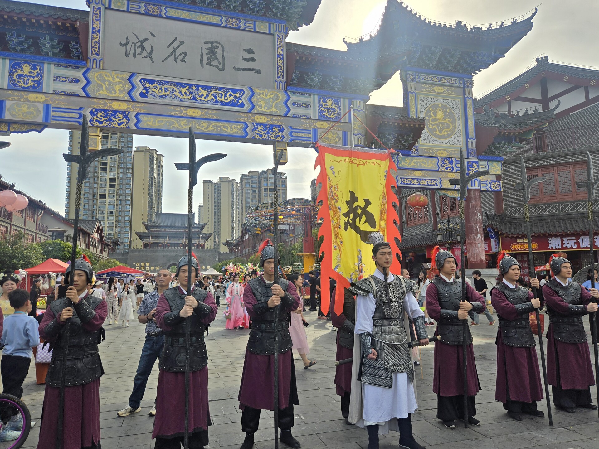 古戏台上,湘剧折子戏《游园》、《西厢记》等经典选段正轮番上演,演员们悠扬婉转的唱腔、惟妙惟肖的表演,赢得观众阵阵叫好。为了吸引年轻群体,活动还安排了桂阳特色NPC定点游城互动,“赵子龙将军”、“卖花姑娘”、“蓉城更夫”等角色身着特色服饰循城游走,供游客打卡合照,留下独具桂阳特色的合影。