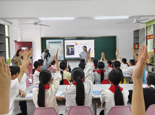 新桂阳4月24日讯(通讯员 陈美艳 杨壮壮 唐婧 徐悦娜 邓雷 卢军)春风送暖书香至,正是少年读书时。在第31个“4・23世界读书日”到来之际,4月23日,为深入推进全民阅读,厚植书香校园底蕴,在桂阳县科学技术协会的指导下,由“桂阳星火”悦读团(桂阳县选调生科普志愿团)携手桂阳县新华书店,走进奥运冠军侯志慧的母校——樟市镇中心学校,在“志慧”书屋成功举办以“星火伴书香,共庆读书日”为主题的悦读交流活动。活动以星火之力浸润童心,用冠军精神激励成长。