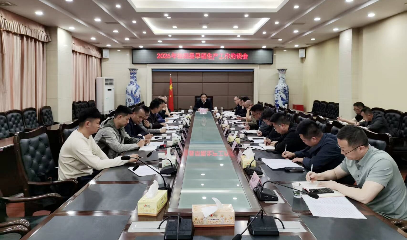 会议听取全县2026年早稻生产工作情况,安排部署下阶段工作。部分乡镇(街道)就进一步抓好早稻生产工作作了表态发言。