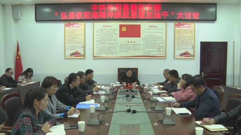 新桂阳10月15日讯(记者 夏峰)今天下午,县委组织部组织全体干部职工齐聚一堂,开展“弘扬欧阳海精神,解放思想加油干”大讨论。