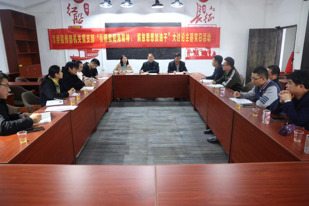 随后,桂阳县委宣传部机关党支部在丰加书院组织召开座谈会,大家围绕“弘扬欧阳海精神 解放思想加油干”主题进行了发言,纷纷表示要学习欧阳海“坚守信仰、一心为民、拼搏奉献、勇争一流”的精神,将解放思想与实际工作相结合,大干、快干、加油干、拼命干,为桂阳争创“全国百强县”贡献宣传力量。