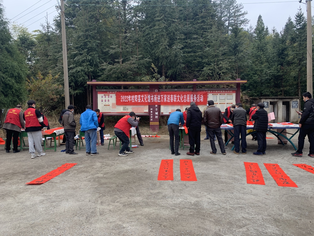 新桂阳1月13日讯(记者 曹诗灏)近日,县文化馆组织文化志愿者们来到白水瑶族乡丰城村,开展书画进万家送春联文化志愿服务活动,为群众义务写春联,提前送去浓浓的新春祝福。