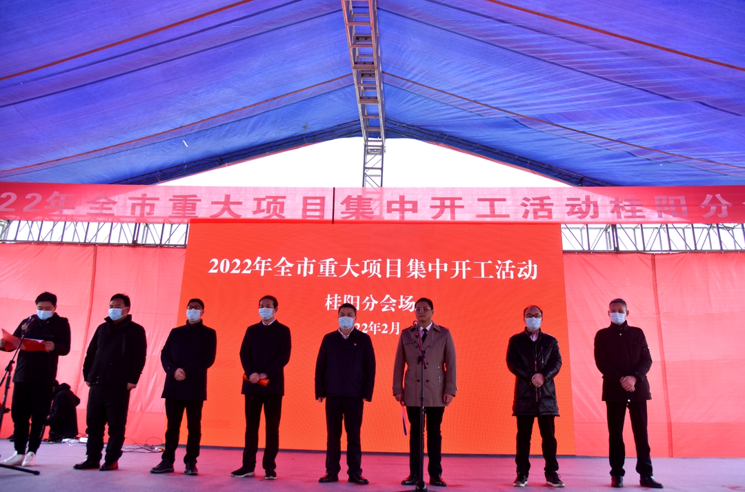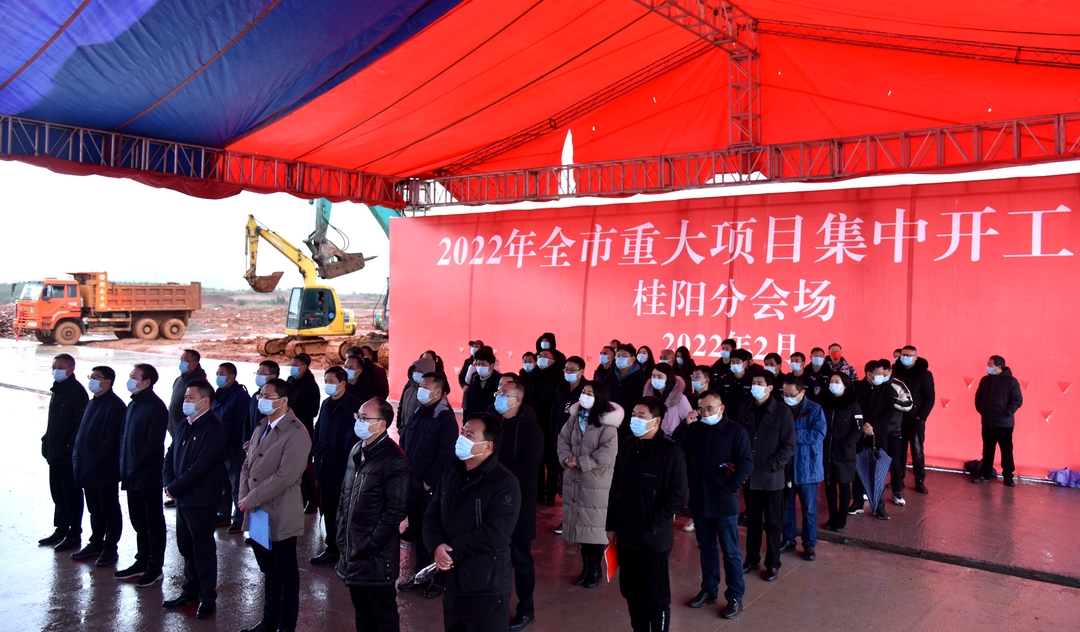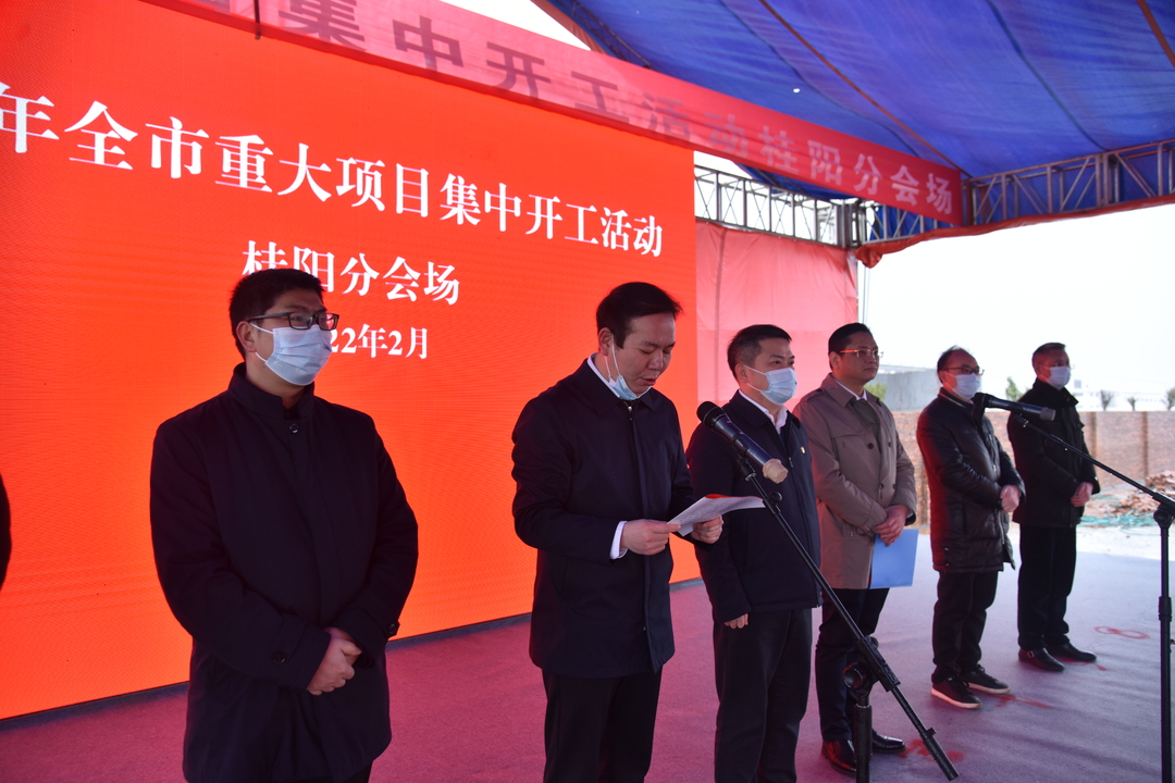 新桂阳2月18日讯(记者 夏峰 李勇 李维坤 何禹军)今天上午,2022年全省重大项目集中开工活动暨2022年全市重大项目集中开工桂阳分会场活动举行,我县共新开工重大项目10个,总投资33.31亿元。县委书记巫初华在桂阳高新区有色产业园参加活动并宣布项目开工,县委副书记、政法委书记杨君毅主持活动。