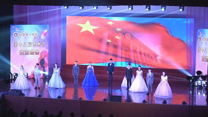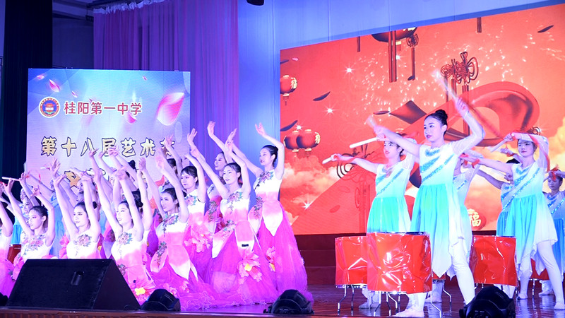 新桂阳1月2日讯(记者 夏峰)近日,桂阳一中举行第十八届艺术节文艺汇演,主题为“放飞青春梦想,书写人生芳华”。清新的歌曲、振奋的朗诵、幽默的小品、优美的舞蹈轮番上演,充分展示出学校师生高雅的艺术追求、昂扬的精神风貌,精彩节目不时赢得在场的2000多名师生的阵阵掌声,学校成了欢乐的海洋。