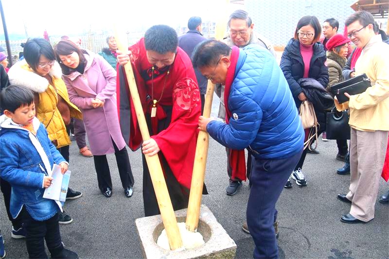 长安庄园内,在工作人员的协助下,派粥活动有序开展,大家手捧着粥,相互聊着家常,一个笑容,一碗暖粥,一声问候,拉近了彼此距离。活动现场,传统民俗抖糍粑活动热火朝天地开展。不少九三学社社员身穿汉服加入抖糍粑行列中,感受着这一当地民俗活动带来的乐趣。