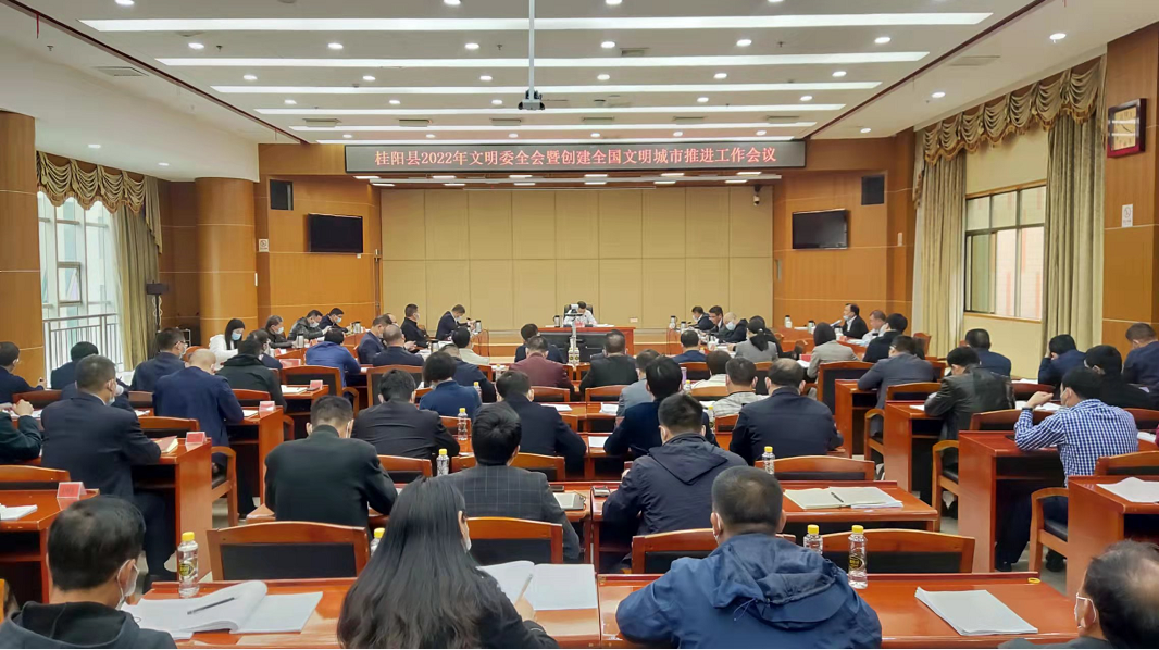 会议传达学习了全省、全市文明委全会精神,安排部署推进全国文明城市创建等工作;审议了《桂阳县精神文明建设指导委员会2022年工作安排》《桂阳县文明创建工作考核办法》《桂阳县2022 - 2023年创建全国文明城市常态化管理工作实施方案》等创文相关方案和《关于2017届、2019届县文明单位、文明标兵单位、文明村镇、文明社区、文明校园复查情况通报》以及《关于表彰2021年度“桂阳好人”的通报》。