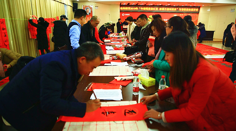 新桂阳1月17日讯(记者 廖诗卉 黄磊 王清一)1月17日,桂阳县烟草公司活动室热闹非凡,这里正在举行“今朝笔墨染红宣,新春万福到我家”写春联送祝福活动。