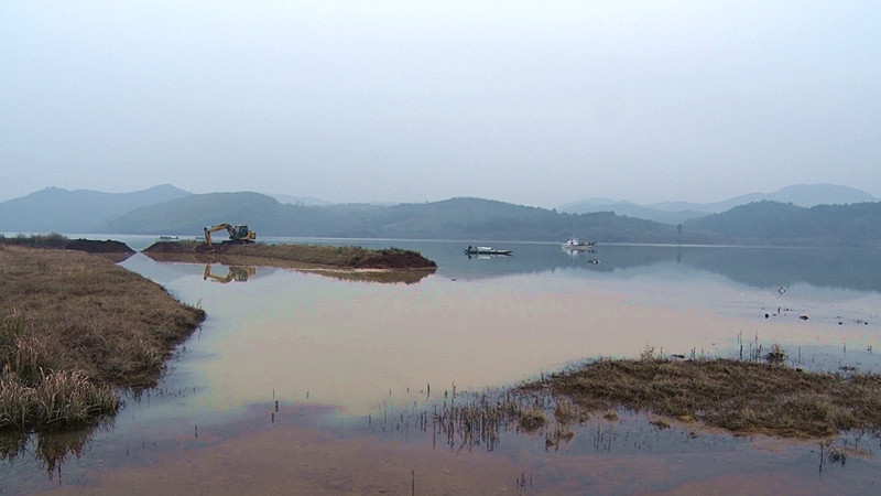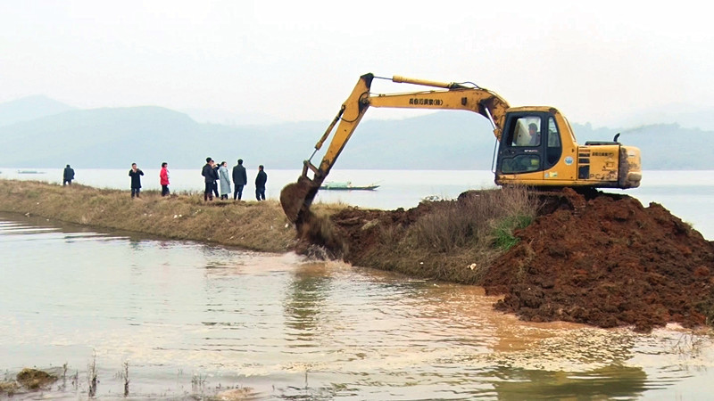 雷坪镇林里村一村民未经许可,擅自在欧阳海水库围库筑坝用于发展养殖业,坝长约150米,水域面积约七千平方米。随着拆除现场挖掘机的推进,该处乱占水库库区的围库筑坝被依法拆除。