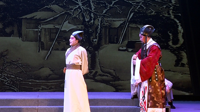 当晚演出的湘剧昆曲《一天太守》,讲述了宁康府新任太守史文远上任时遇杀人盗库重案,高北斗借当一天太守,侦破了杀人盗库一案,严惩倚仗权势作恶多端的通判盛方。剧情诙谐幽默、起伏跌宕,深刻揭露了封建社会官场的丑陋与黑暗。