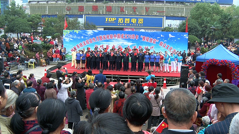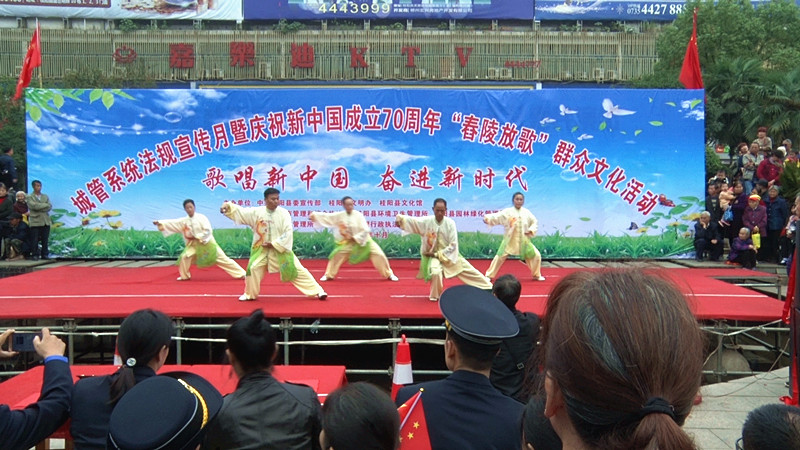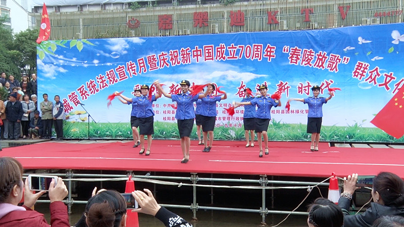 新桂阳10月18日讯(记者 夏峰)10月18日,城管系统法规宣传月暨庆祝新中国成立70周年“舂陵放歌”群众文化活动在蔡伦广场举行。