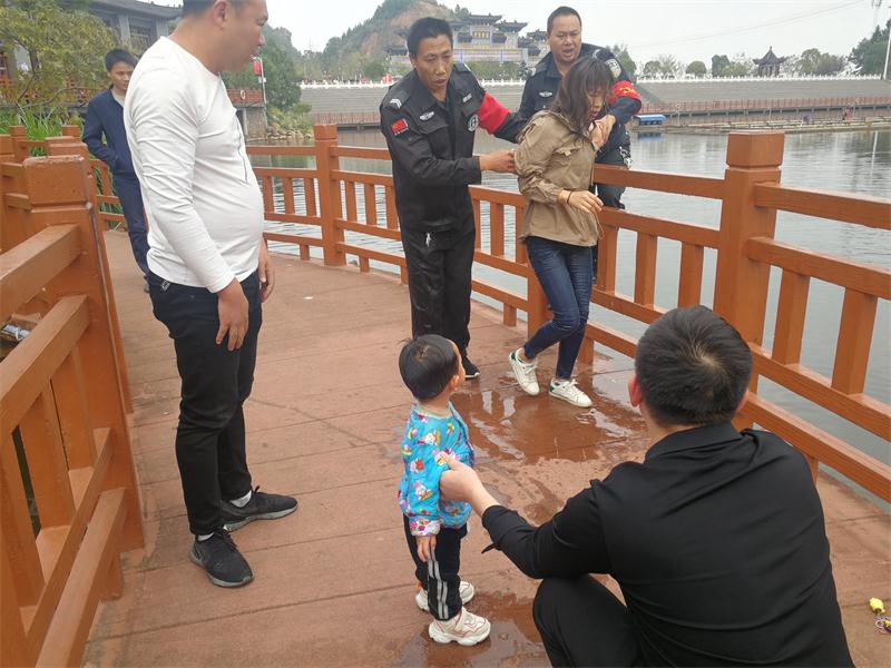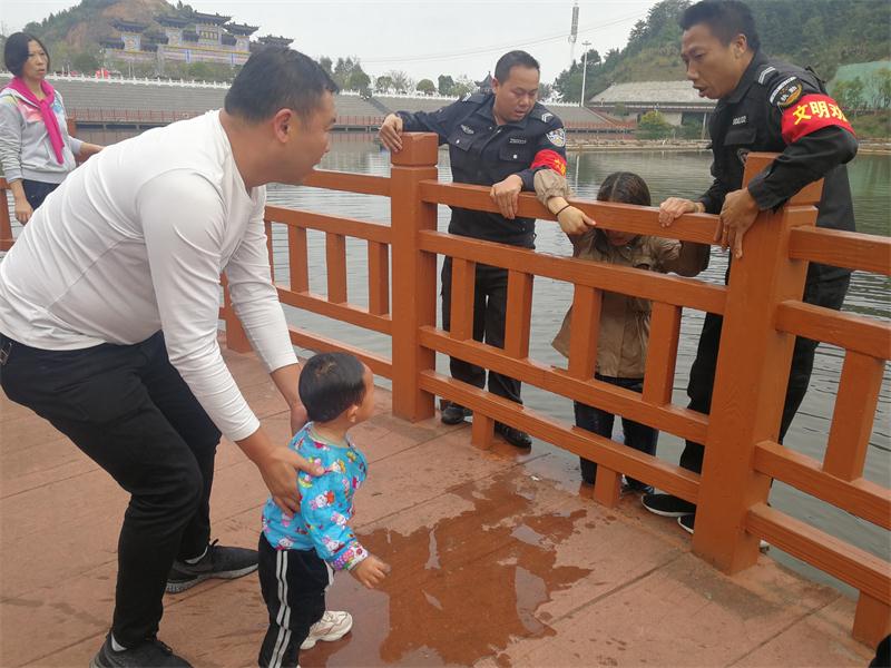 新桂阳10月18日讯(记者 李卓林 邱龙飞)10月18日下午3点40分左右,桂阳文化园龙凤双亭的走廊处发生一起意外落水事件。一岁半的宸宸(小名)在用饲料喂鱼的途中,不慎从防护栏的间隙处落入水中。宸宸的妈妈黄女士见状也立刻跳进水里。随后,两人被文化园保安李文平、邓寨佑救起,目前已无大碍。