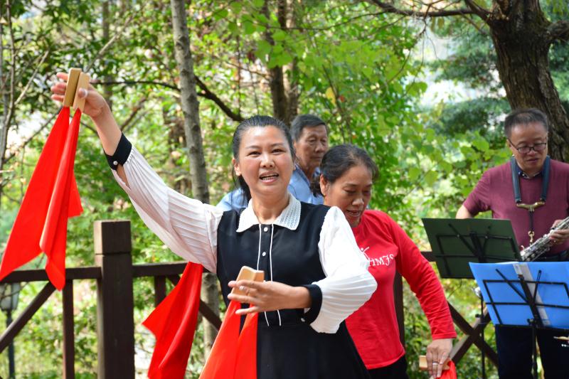 新桂阳10月23日讯(记者 李登科 陈勇 李卓林)10月22日上午,沿着翡翠公园的石板路拾级而上,郁郁葱葱的树林里传出咿咿呀呀的唱腔。曲韵悠悠然,声声入梦来。原来是八字塘社区里蓉城昆曲剧团的演员们正在排练昆曲版剧目《贵妃醉酒》,不久后,他们将送戏下乡、送戏入校园,参与群众文化惠民演出。