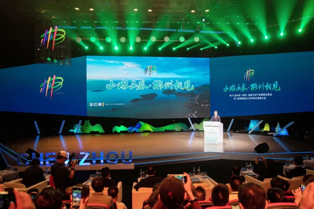 ▲ 第十九届中国(深圳)国际文化产业博览交易会第二届湖南旅游发展大会郴州专场文旅推介会。(欧阳常海 摄)