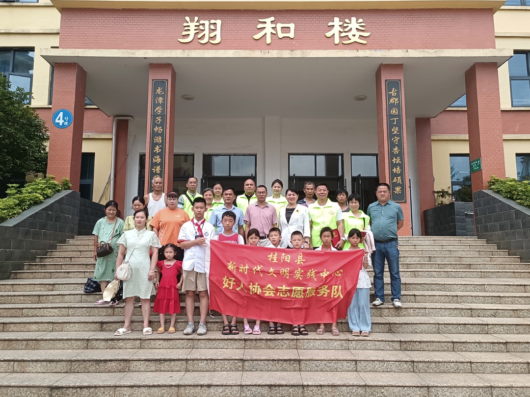 新桂阳7月17日讯(记者 李勇)7月16日,县好人协会到龙潭小学开展“爱心助学、强国有我”志愿服务活动,为9名品学兼优、家庭困难学生送去关爱和助学金。