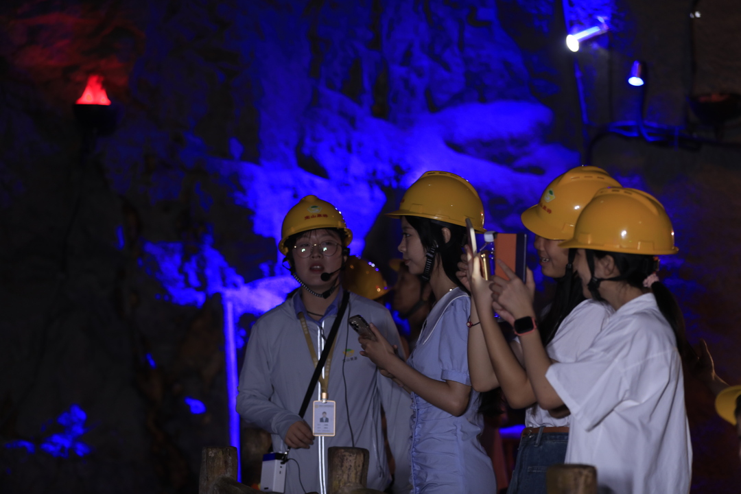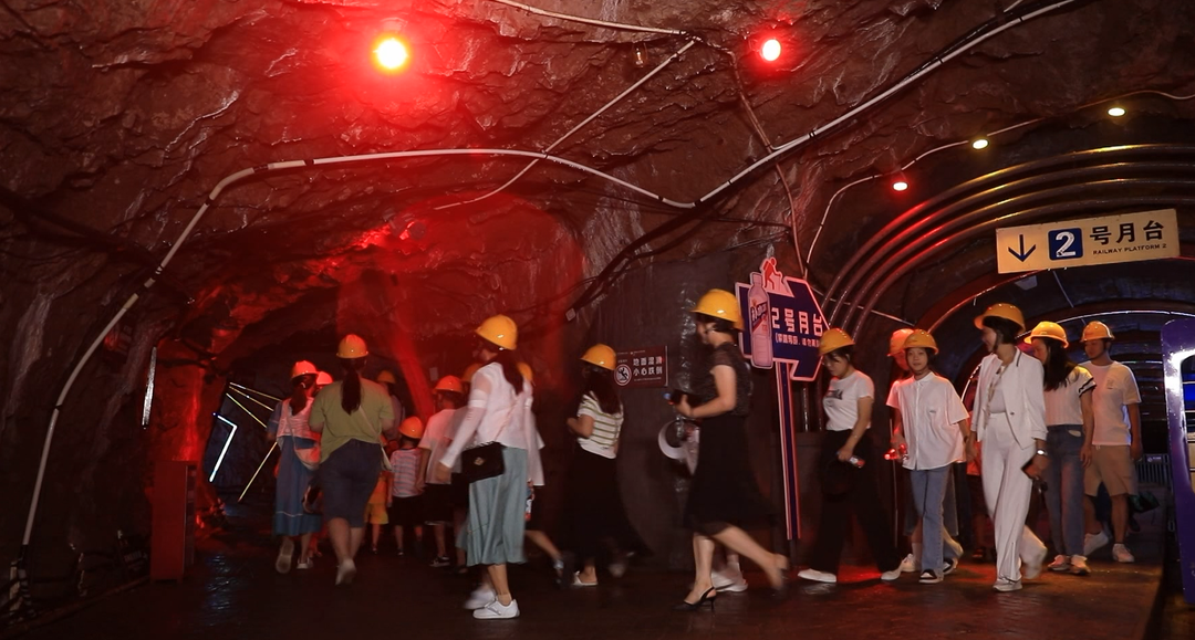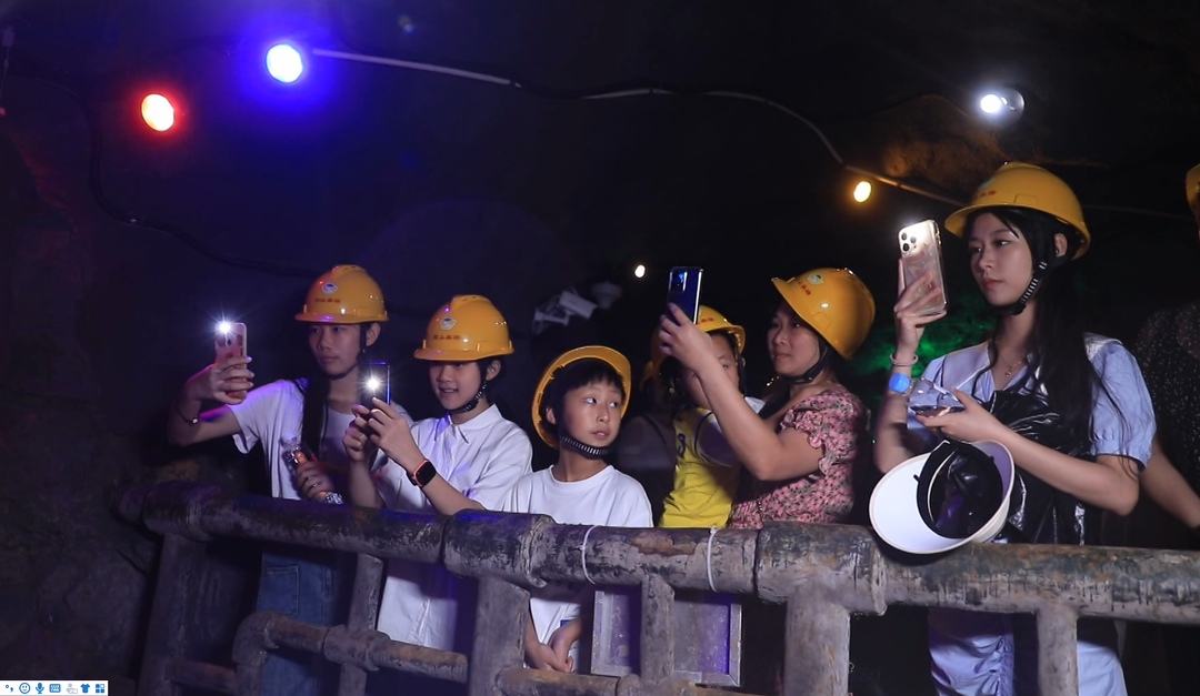 “过去只是在地面上游玩过 ,今天还是第一次来井下参观一个矿洞我感觉非常的特别 ,因为里面的景色非常的震撼, 我还看到了很多井下工人们下井时候会用到的道具啊,我还看到了很多各色各样的矿石,也是我第一次看见从土里面,挖出来的矿石是长什么样子。”游客龚月婷说。