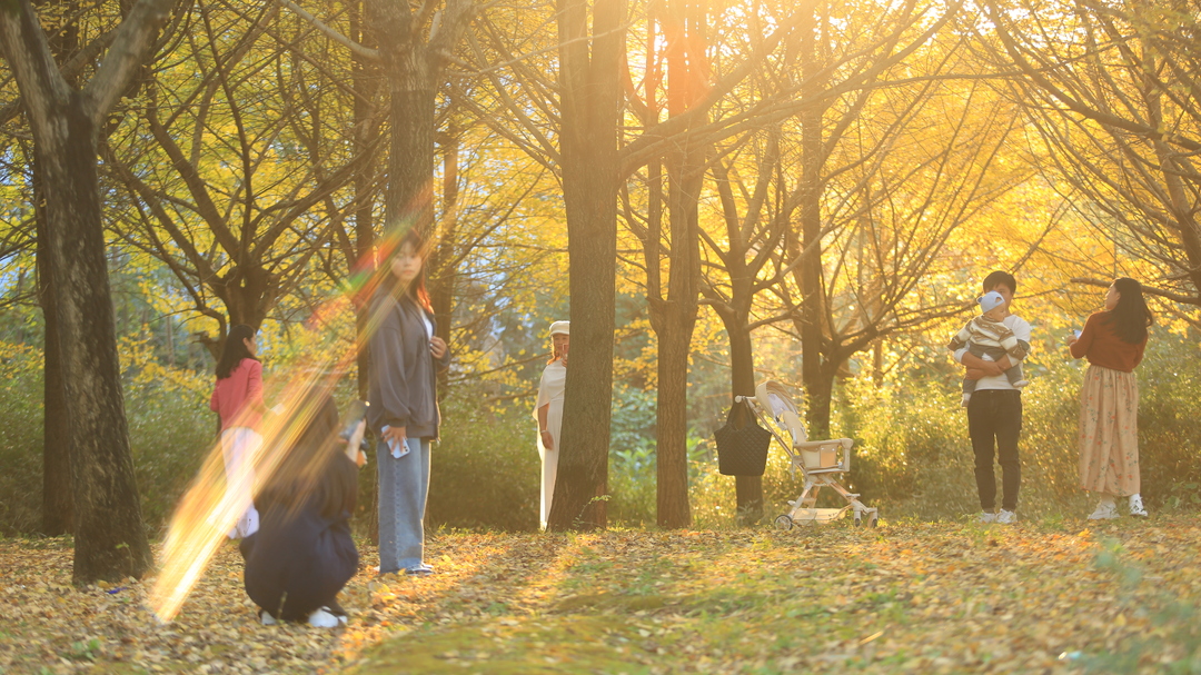 温暖的光、鲜艳的黄,游客们穿行其间,怡然自得。掩映在金色林海里的游人也俨然成为画中人,大家徜徉在宛如童话世界般的银杏林中打卡拍照,细细品味冬季最浪漫的景色,流连忘返。