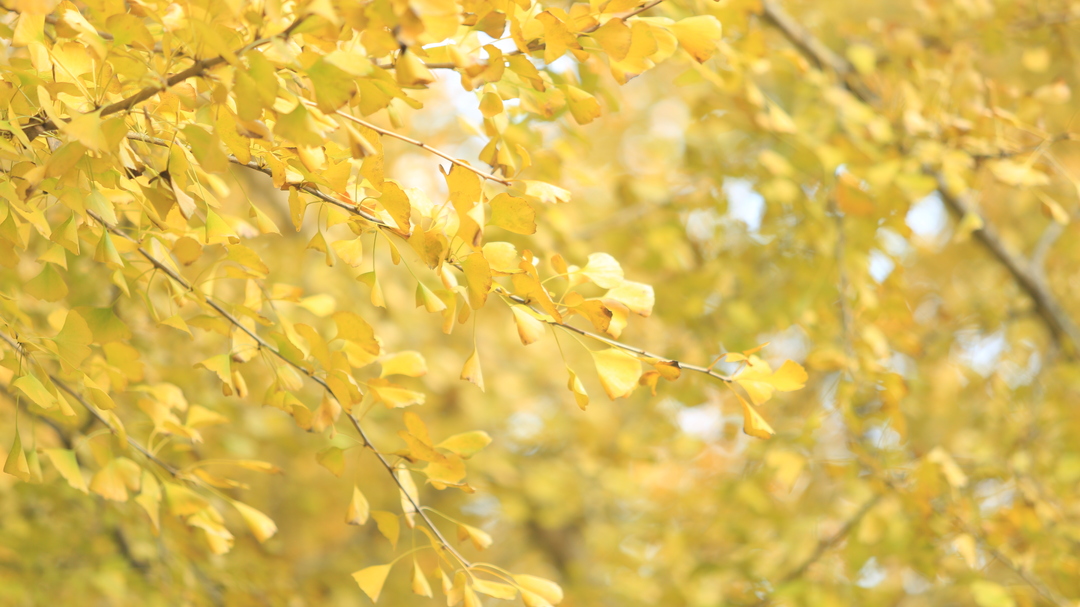 初冬风渐起,片片金叶如同小扇子在空中摇曳,风姿绰约,秀丽动人。站在树下,抬头望去,树枝上一簇簇的银杏叶在阳光的照射下闪着金光,一片片金黄色的叶子随风摆动。风过叶落,铺成一地锦绣,满目金黄,前来观赏的游客络绎不绝。