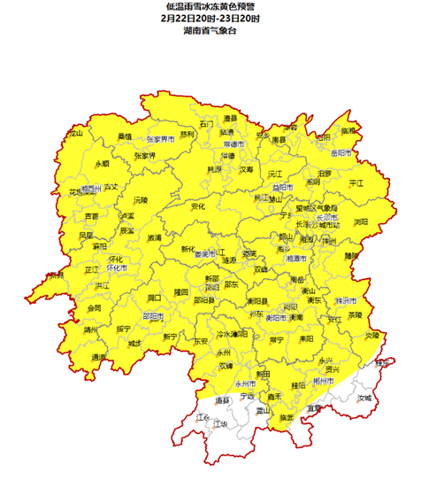 根据预警,到23日20时,湖南所有市州都将出现雨凇或积雪,且最低气温≤0℃。