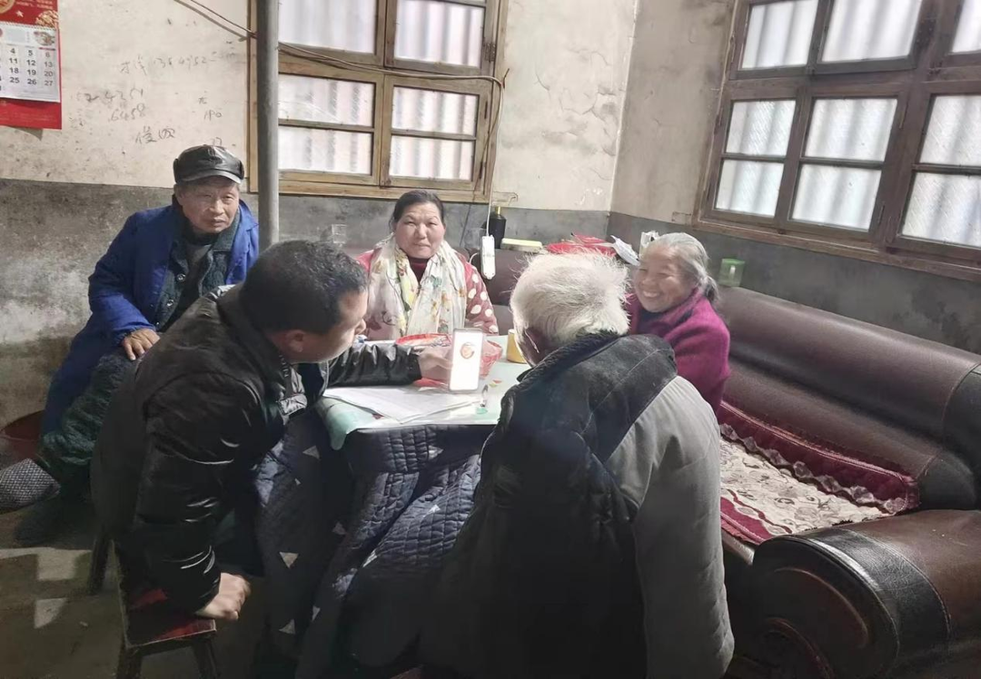 桂阳荷叶镇水边村邻长给困难独居老人进行老年认证