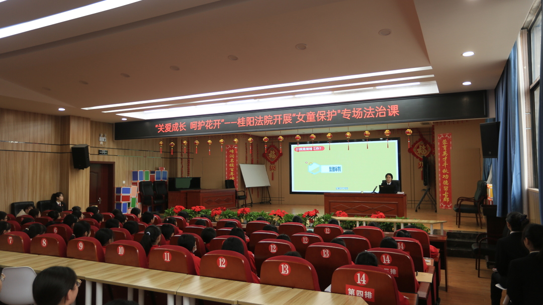 新桂阳3月8日讯(记者 廖诗卉 何禹军)在“三八”国际妇女节及第3个“3.10”女法官国际日来临之际,县人民法院开展“关爱成长 呵护花开”巾帼普法护成长活动,女法官们走进校园,开展“女童保护”专场法治课,教育同学们自觉学法守法、懂法用法,构筑自我保护的“防火墙”。