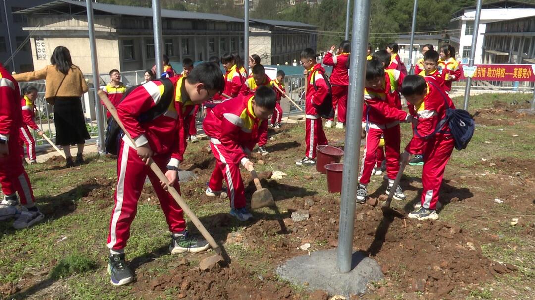 新桂阳3月12日讯(记者 谢新阳)3月12日,县人民完小、芙蓉完小组织师生到县特殊教育学校开展爱心捐赠植树活动。