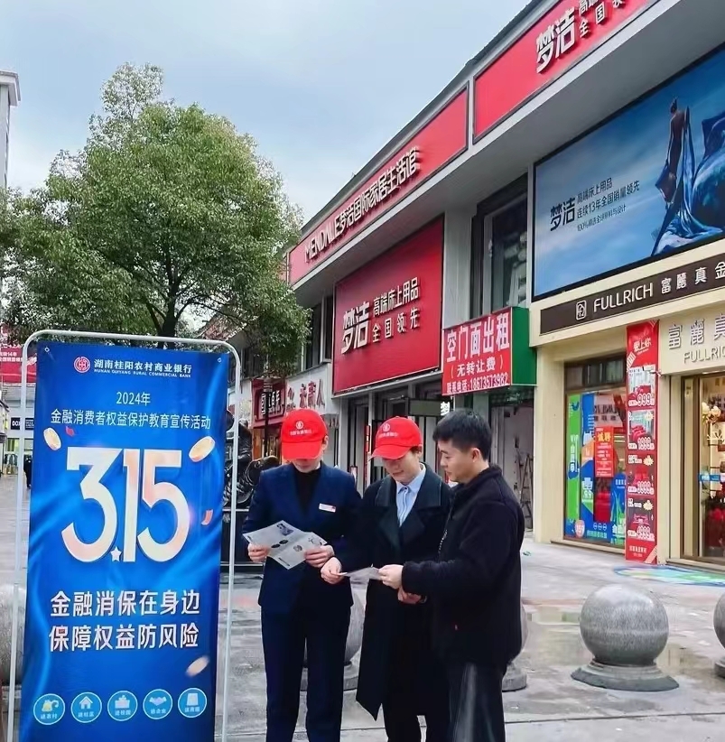 新桂阳 3月15日讯(通讯员 赵芳辉 李成 尹璐)为提高群众风险防范和权益维护意识,进一步构筑良好金融消费环境,守护好人民群众的“钱袋子”,3月15日,桂阳农商银行在桂阳县商业步行街开展“3.15金融消费者权益日”社会宣传服务活动。