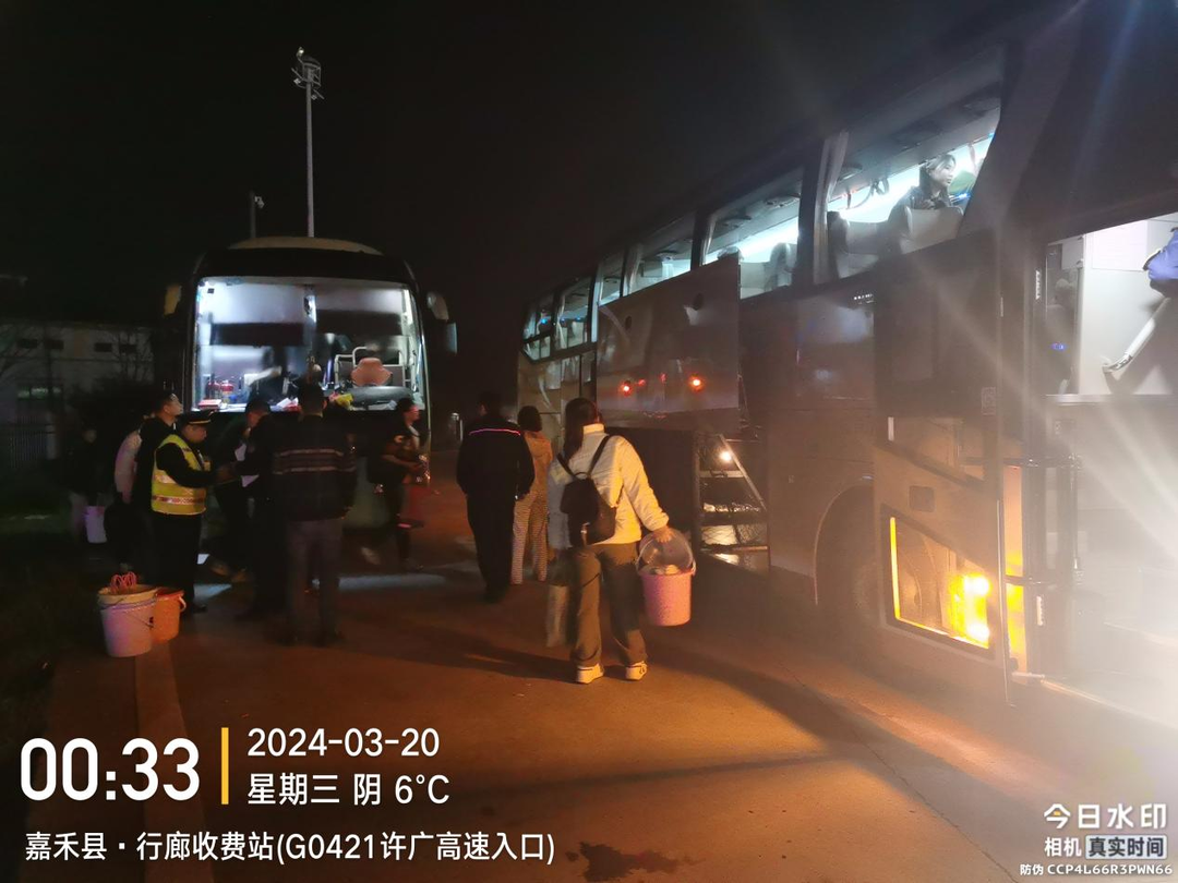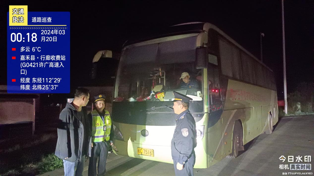 新桂阳 3月21日讯(通讯员 袁寿舜)3月19日23时,高速交警嘉禾大队执法人员对停靠G0421许广高速桂阳县欧阳海服务区接送学生的大巴进行执法检查时发现,载着42名师生的广西省桂林市某公司旅游大巴无法提供营运证、包车牌,涉嫌非法营运。高速交警执法人员立即通知桂阳县交通运输综合行政执法大队对其进一步核查。在等待期间,司机用备用钥匙将大巴开出服务区,往广州方向逃行,高速交警随即一路尾随喊话、勒令就近下高速接受检查,20日0时30分引导至嘉禾县行廊高速路口。